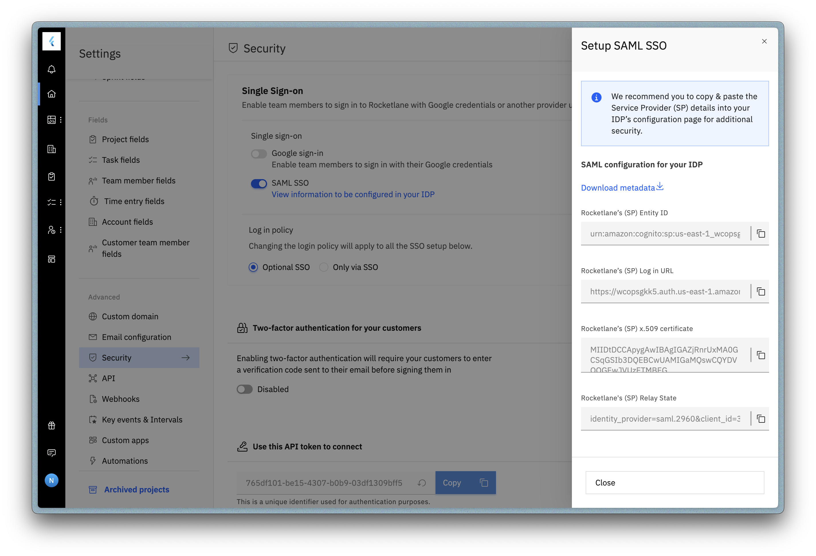 Your SSO integration is now set up. Click the Enable SSO button in Rocketlane to activate the integratio